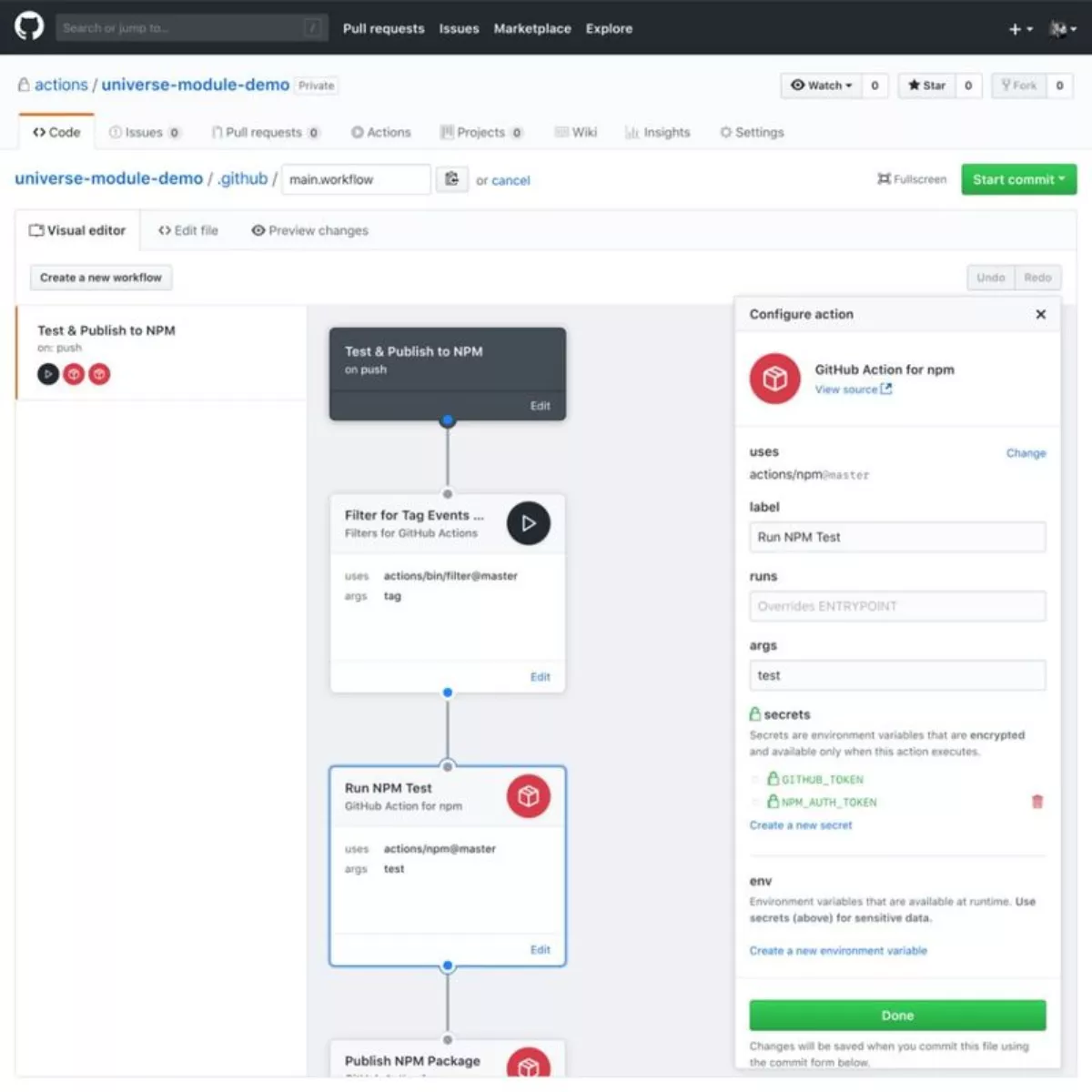 "Develop and share actions to automate any task your projects require, building on an ecosystem of options. Whether you need to package an NPM module, send an SMS alert, or deploy production-ready code to the cloud in parallel, you can create or find a GitHub Action for the job.